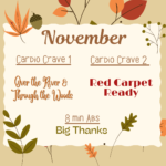 Take yourself into the outdoors in this cardio workout! Picture the adventure to be had “over the river and through the woods” while you jump, leap and skip all over your space in this awesome plyometric workout! Hopping, leaping and kicking will keep your heart rate up, while squatting, slamming and thrusting down to the ground will give you the tone in your lower body. For best results, do this workout at least four times this month to get all the steps down and to move through the soreness in your legs! You’ll love the Pivot Jacks, Creek Leaps and Kicking Man. You can do this as you picture the Thanksgiving song in November, or whenever you need a fun and challenging cardio workout!