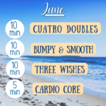 This is no joke. A good night’s sleep will make a big difference in your energy and motivation. Have a routine you begin as soon as that go-to-bed alarm rings. Take contacts out, wash face, brush teeth, change into pjs, set out clothes (even untie your shoes) and set out your equipment. If you’re running, fill up the water bottles for your belt, charge your ear pods, get your head lamp, etc. If you’re doing a video, fill up your water bottle, place the remote, set your mat out. If you need free weights, a jump rope, or band, set those out too. Get it all ready for your early morning workout so you have the bare minimum to do when you wake up.